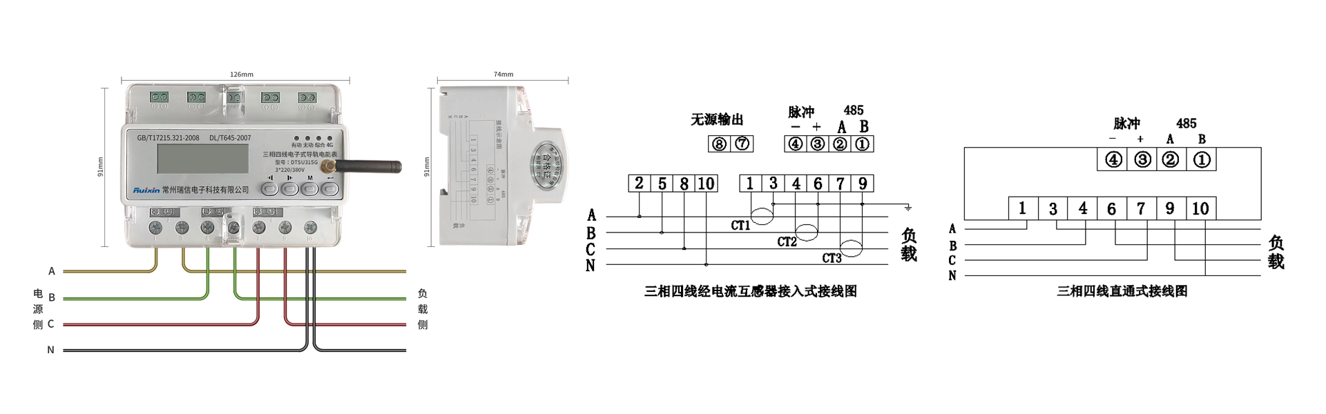 电表型号 | DTSU315G 三相四线电子式导轨电能表 |