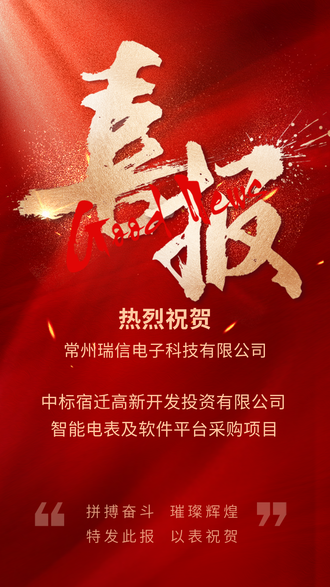 热烈祝贺常州瑞信电子科技有限公司中标宿迁高新开发投资有限公司智能电表及软件平台采购项目!砥砺前行,再创辉煌!