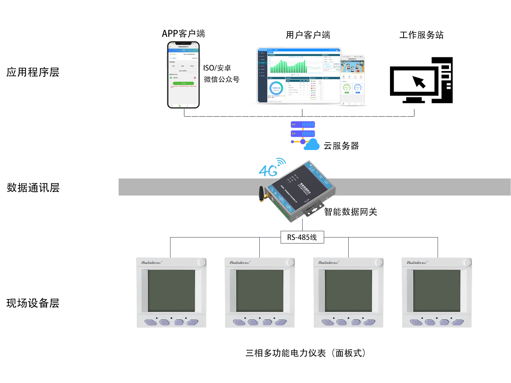 测量电网上高、低压三相电流,三相电压,有功功率,无功功率,功率因数,频率,有功电能, 无功电能。