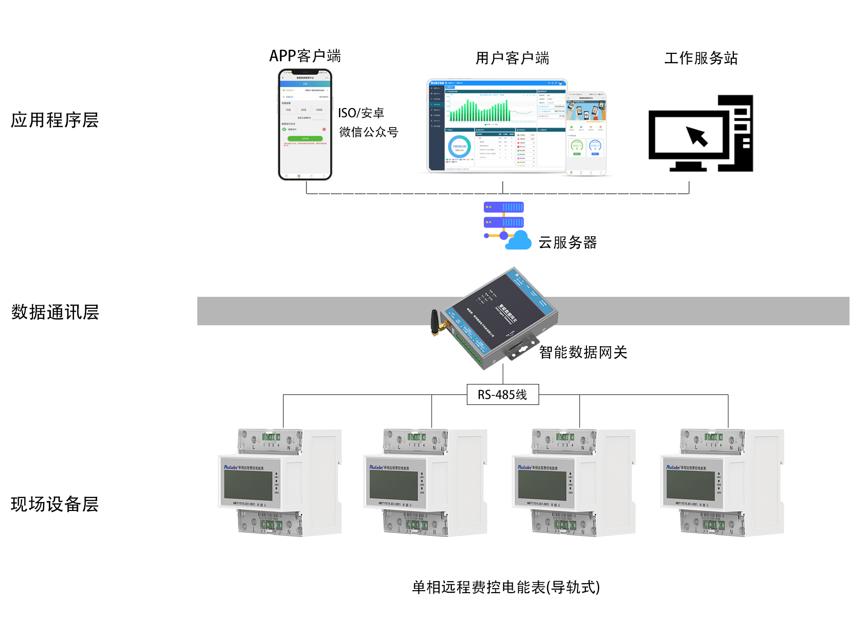 导轨式设计,大屏幕LCD显示,实时显示总用电量、已用电量、剩余电量等重点数据。