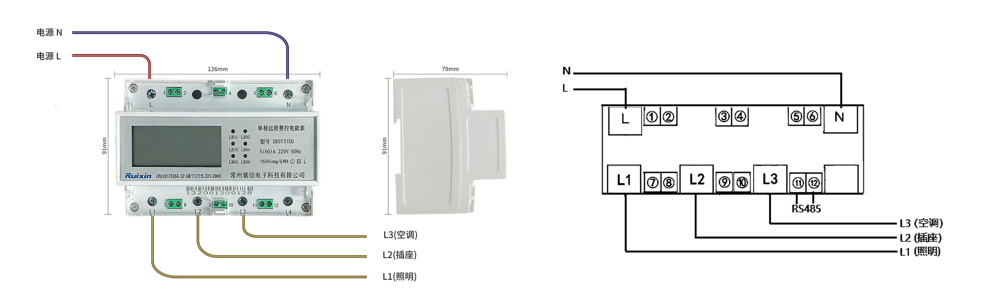 电表型号 | DDSY315D 单相远程费控电能表(导轨式三回路) |