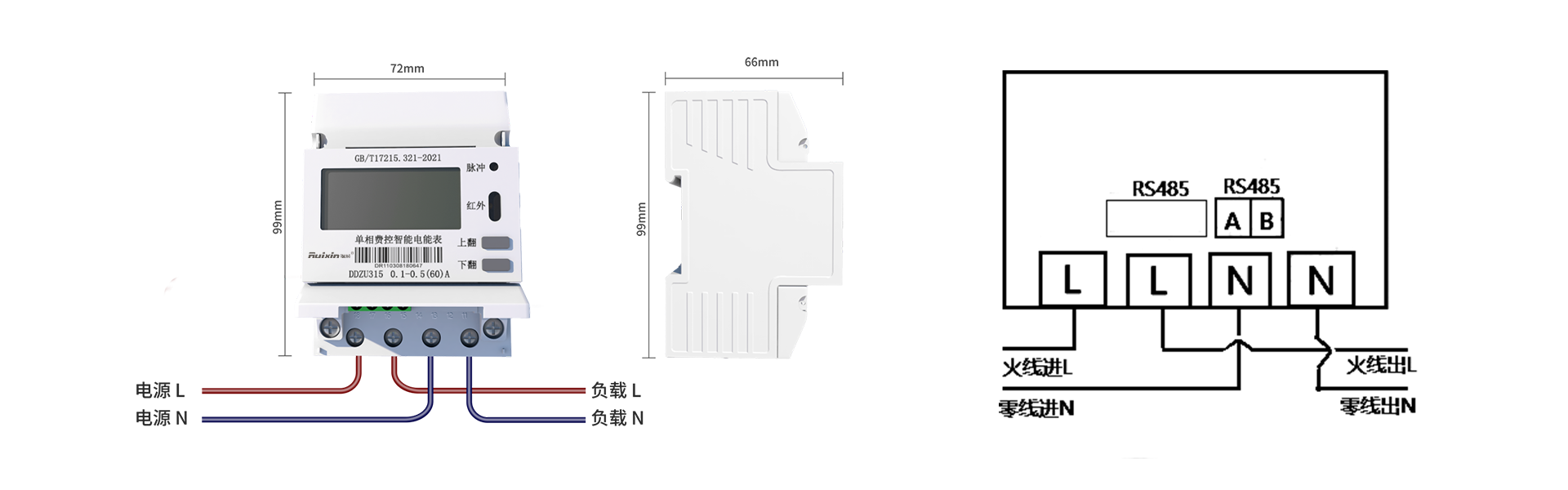 电表型号 | DDZU315 单相费控智能电能表(导轨式) |
