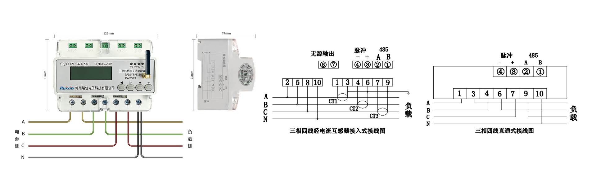 电表型号 | DTSU315G 三相四线电子式导轨电能表 |