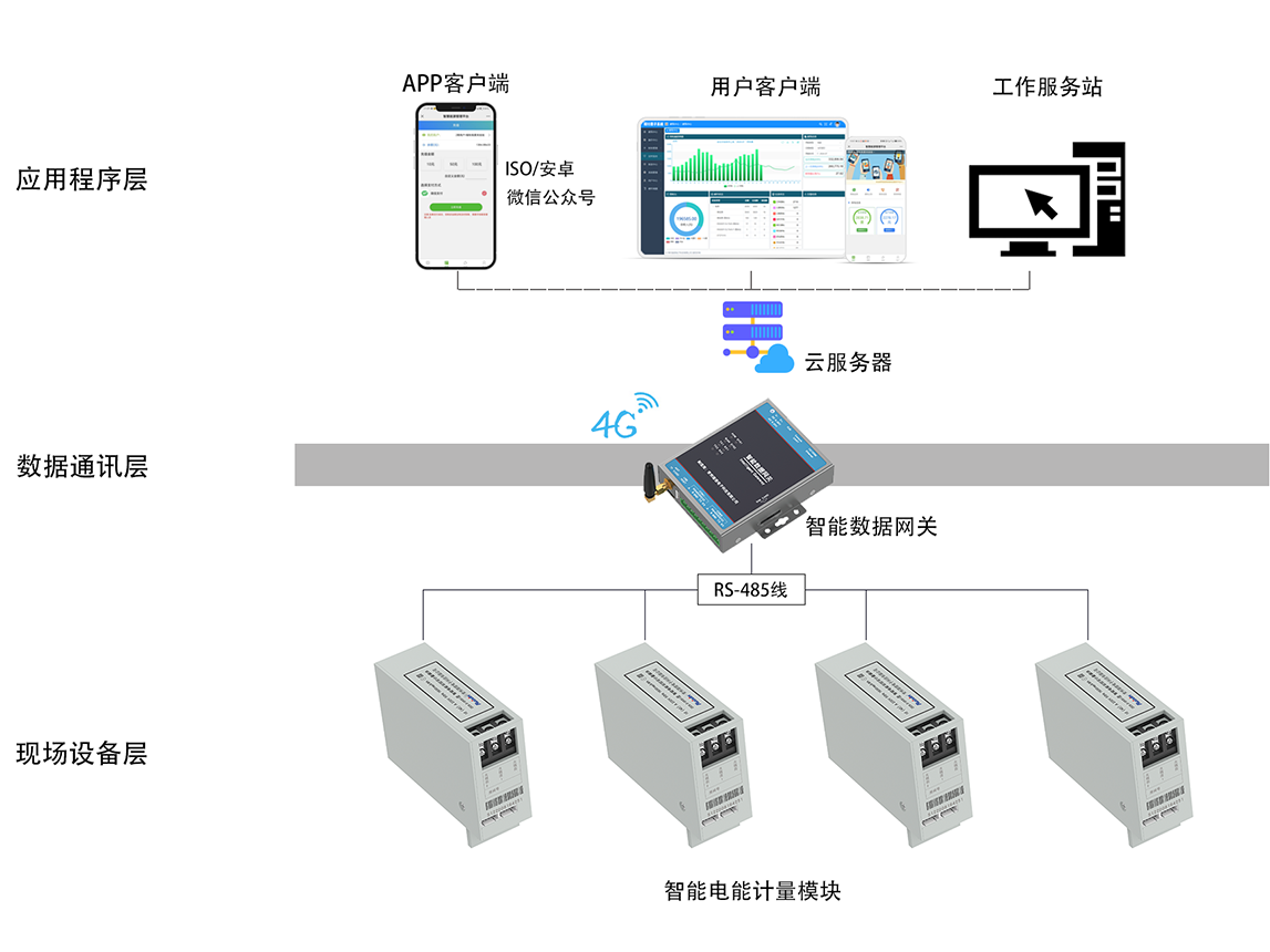 模块化独立设计,RS485通讯接口,光电隔离,有效防止雷击、浪涌等破坏性干扰,大大降低维护难度。