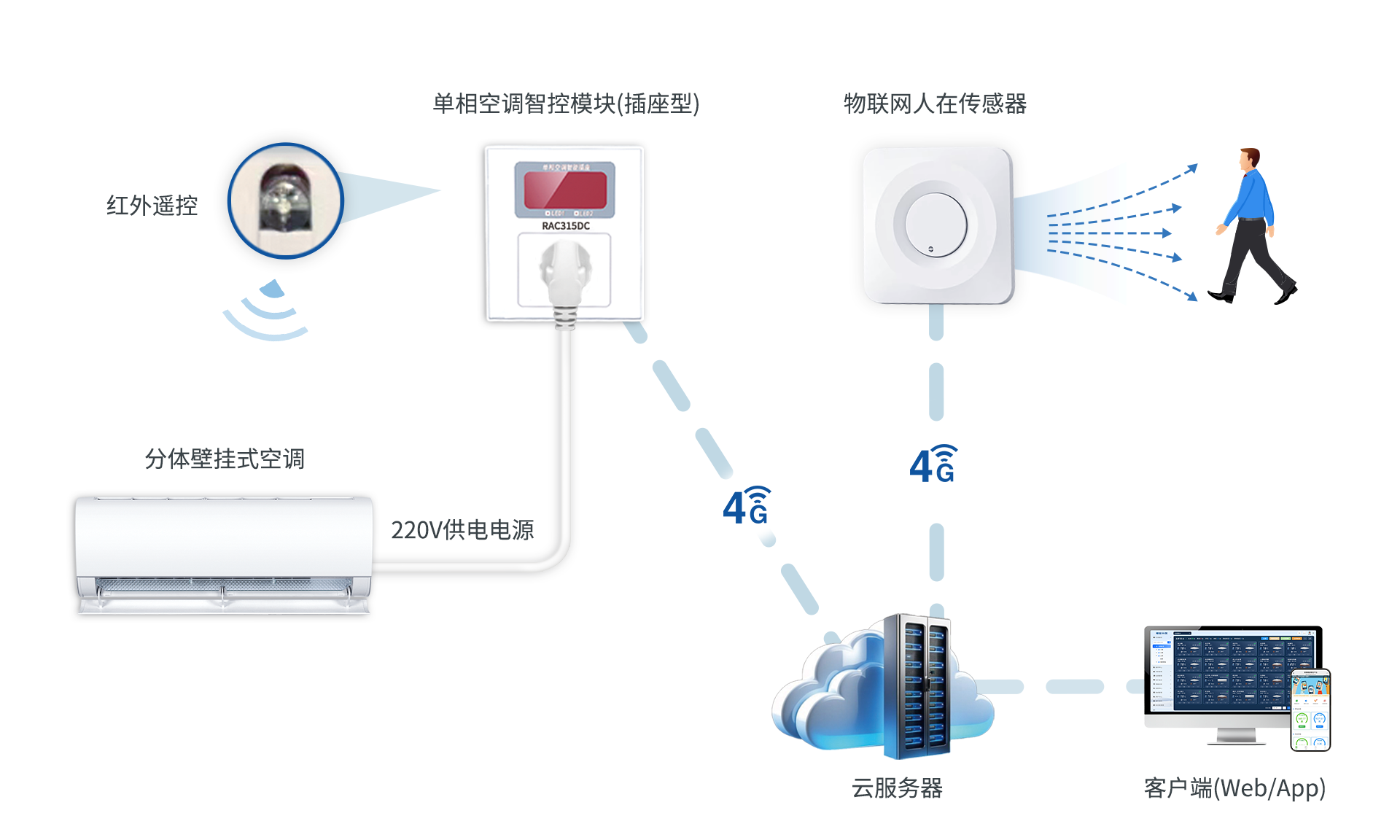 无线通讯:物联网4G通讯与后台数据交互,实现数据采集和策略命令下发。