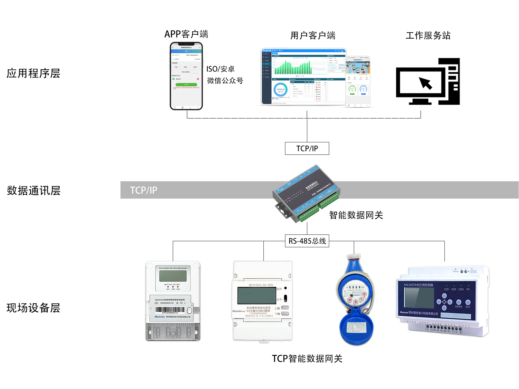 下行支持 DL/T 645-2007、CJ/T 188-2004、MODBUS 及自定义等各种通讯协议表具接入。